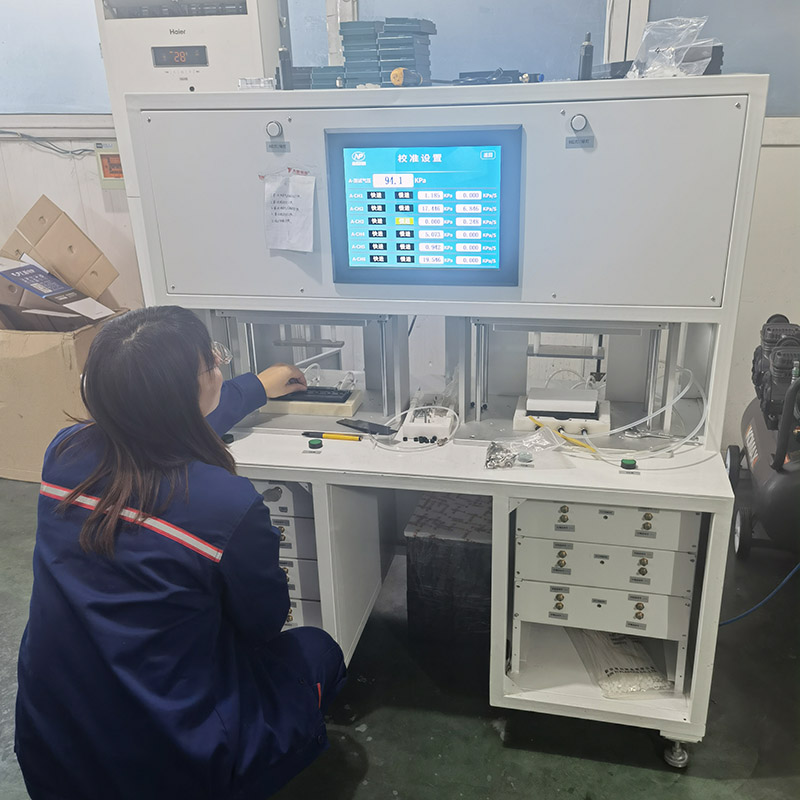 兩組測試,6通道/組,共12通道 每組6個通道同時測試:安全閥橡皮閥帽的開閥壓力和閉閥壓力 測壓力量程:0~100KPa(量程可選) 顯示分辨0.1KPA,精度0.5級(可選0.2級)。 顯示:工業(yè)級15寸觸摸屏 測試:全自動測試,自動判定測試結(jié)果 測試數(shù)據(jù)存儲TF卡